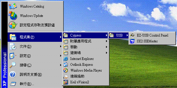 安裝後會多一個EZ-USB Control Penal及Keil uVision2 |