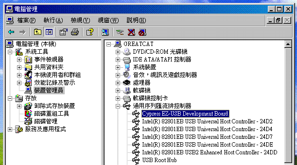 裝置管理員會多出個[Cypress EZ-USB Development Board] |