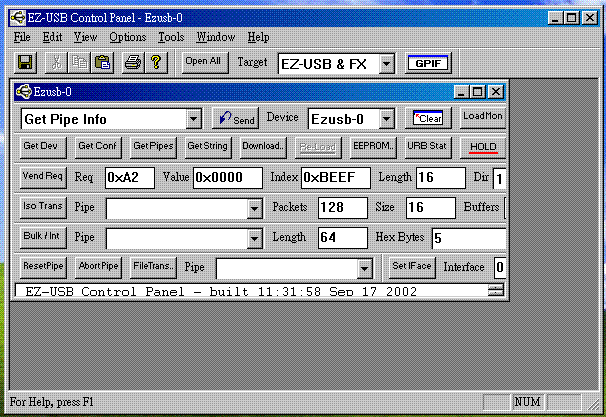 到程式集,啟動EZ-USB Control Penal,出現Target Selection視窗,選[EZ-USB...],再按[OK] |
