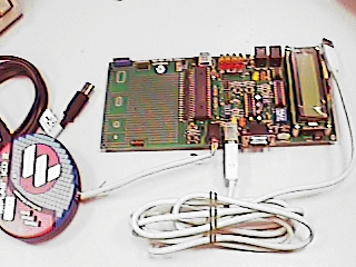 組合後的樣子.ICD2和實驗板以一條電話線相接.